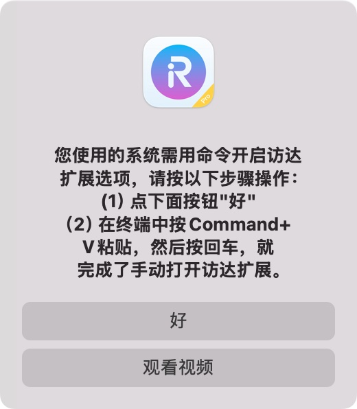 系统会自动打开终端,点击command+V即可复制命令,然后点击回车即可成功打开超级右键/Fastzip/Xapp的访达扩展设置