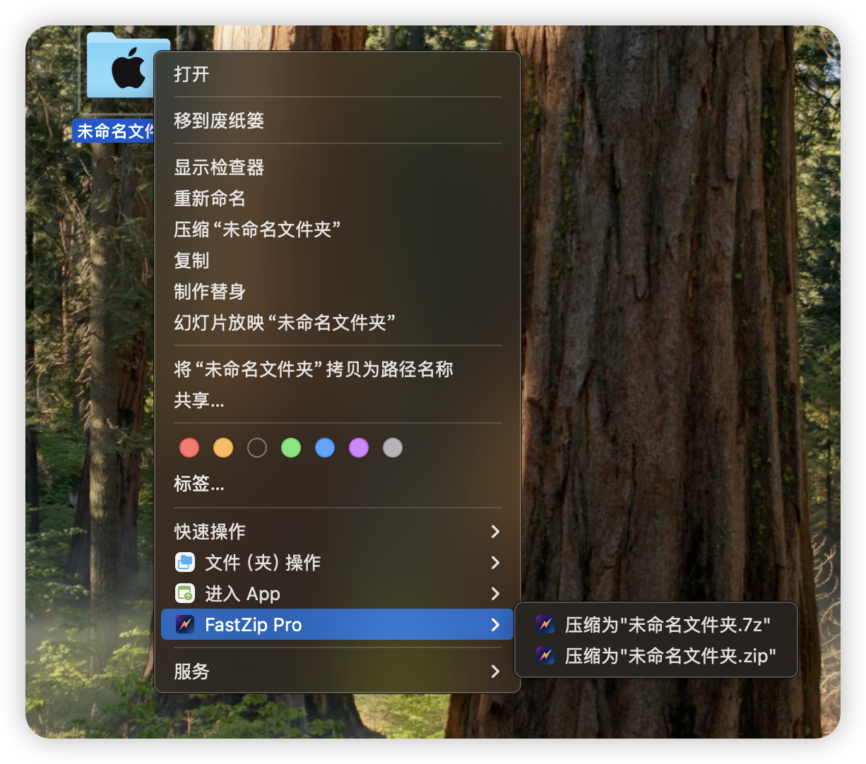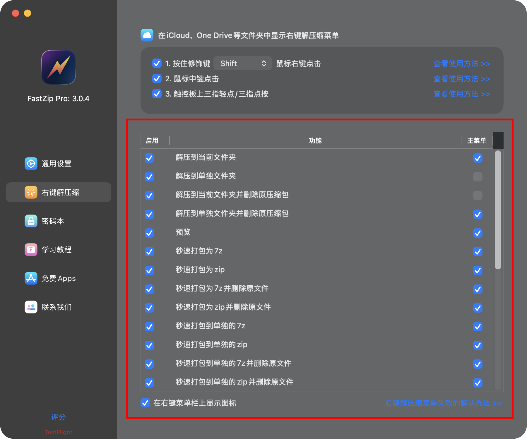 超级右键与Fastzip、Fastzip Pro深度联动,在下载Fastzip、Fastzip Pro后可以直接通过右键来压缩/解压文件(夹)