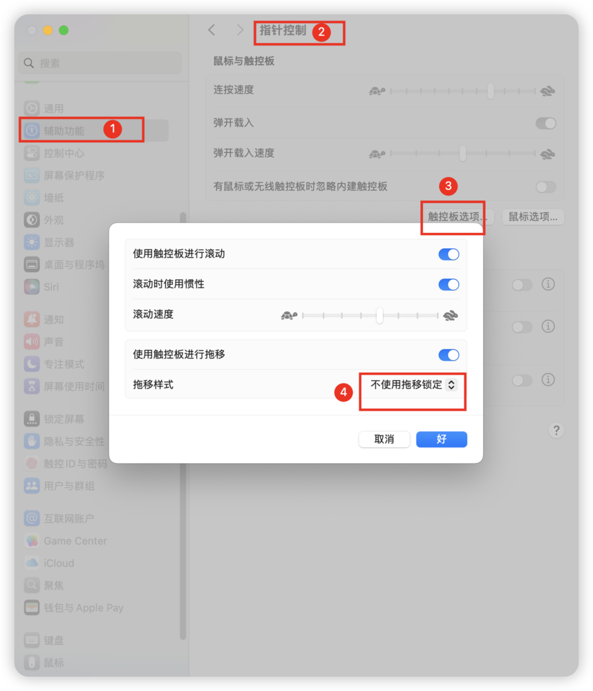 ⚠️注意事项:若您开启了系统的三指拖移功能,则在您三指轻点时系统会自动模拟一次左键点击效果,若对您使用产生影响,请您关闭系统的三指拖移功能。