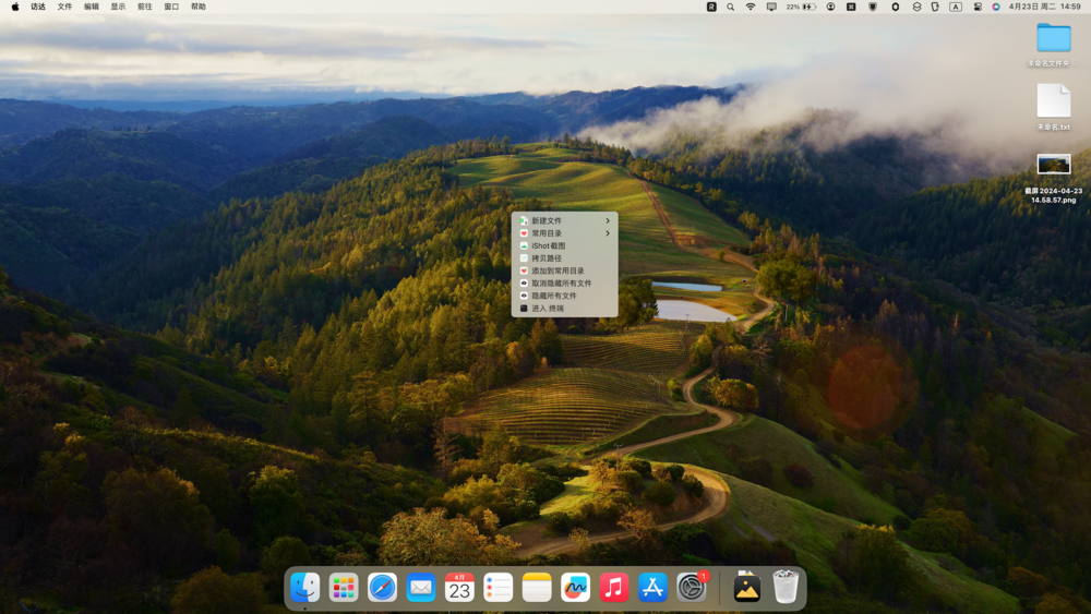 macOS 13 及以下系统版本1. 先确保自己在桌面右键点击能出现系统右键菜单,如果有,请直接看第二步。在桌面右击,检查你有没有开启Mac电脑右键功能,如果已开启,会有如下菜单