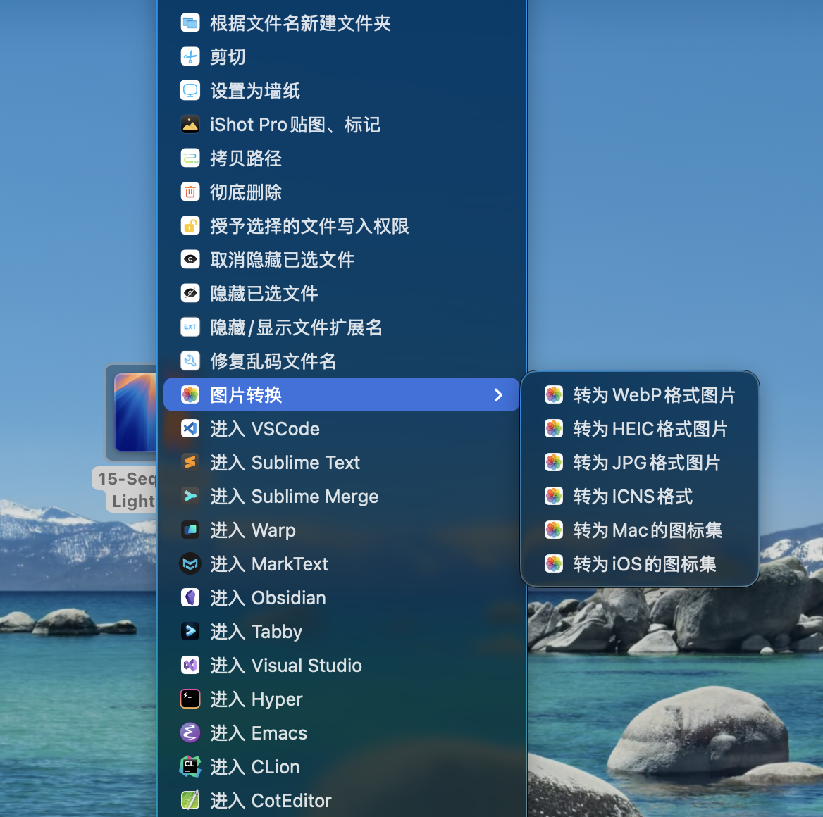 勾选:在右键菜单中转为xx格式图片合并成一个主菜单+多个子菜单